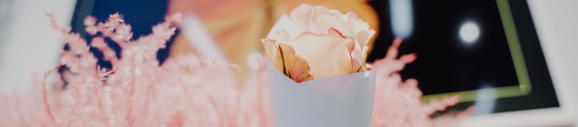 - Stecken Sie die Rose so in die Gutschein-Tüte, dass nur noch der Kopf zu sehen ist.